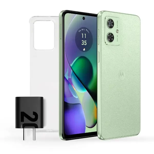 El Motorola Moto G54 cuenta con una pantalla FHD+ de 6.5 pulgadas con tasa de refresco de 120Hz. Por dentro, encontramos un procesador Dimensity 7020 junto con 8GB de RAM y 128GB de almacenamiento y una batería de 5000 mAh con soporte para carga rápida. La cámara principal cuenta con dos sensores, siendo el principal de 50MP con OIS y el secundario una cámara macro, y la cámara selfie es de 16MP. El Moto G54 completa sus especificaciones con parlantes stereo, lector de huellas lateral, diseño repelente al agua y Android 13.